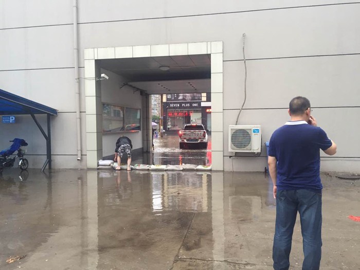 2016719日夜間至20日一場(chǎng)強降雨襲擊我市,還伴有大風(fēng)天氣,市區降水量普遍達30~50毫米,部分路段積水甚至沒(méi)過(guò)了膝蓋。廣豐集團高度重視防汛工作,董事長(cháng)親臨現場(chǎng),緊急部署,動(dòng)員公司全體員工,投入防汛工作。